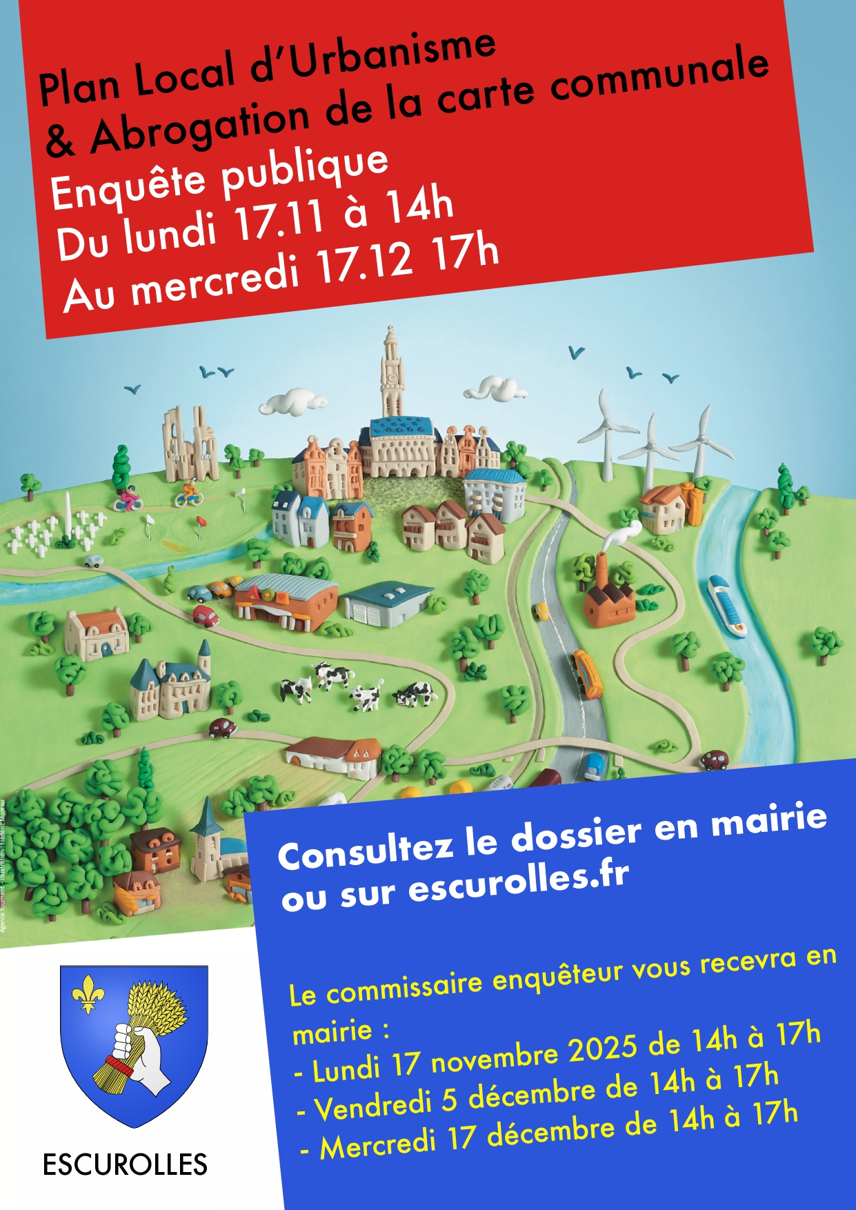 Le 28 mai 2021, le Conseil Municipal d’Escurolles a décidé de lancer l’élaboration d’un Plan Local d’Urbanisme sur le territoire communal. Le Bureau d’Études Julien Dallemagne a été retenu pour ce projet.